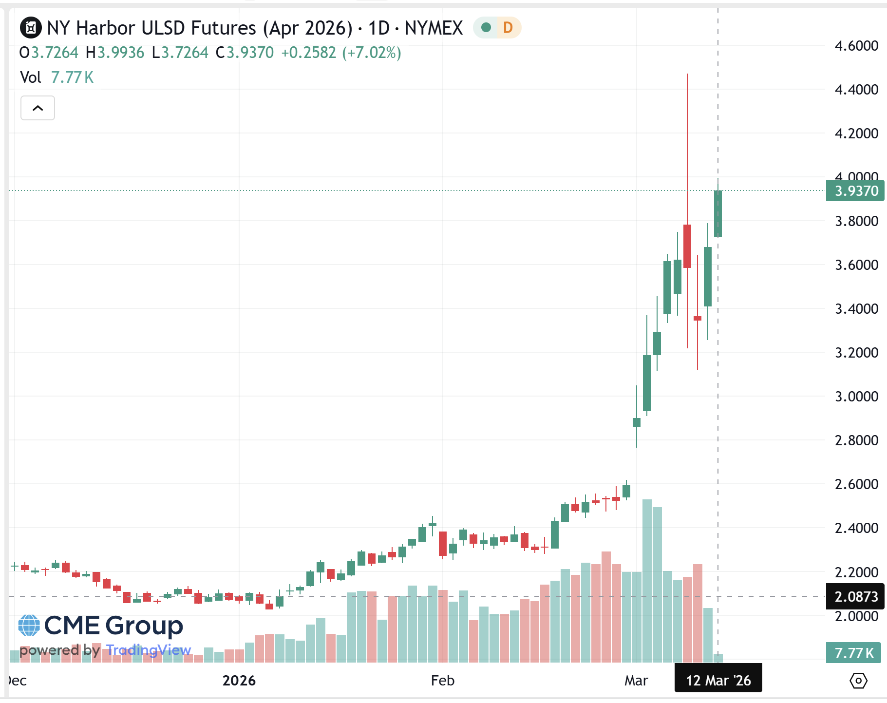 Diesel Futures Hit Record Volatility Amid Iranian Conflict