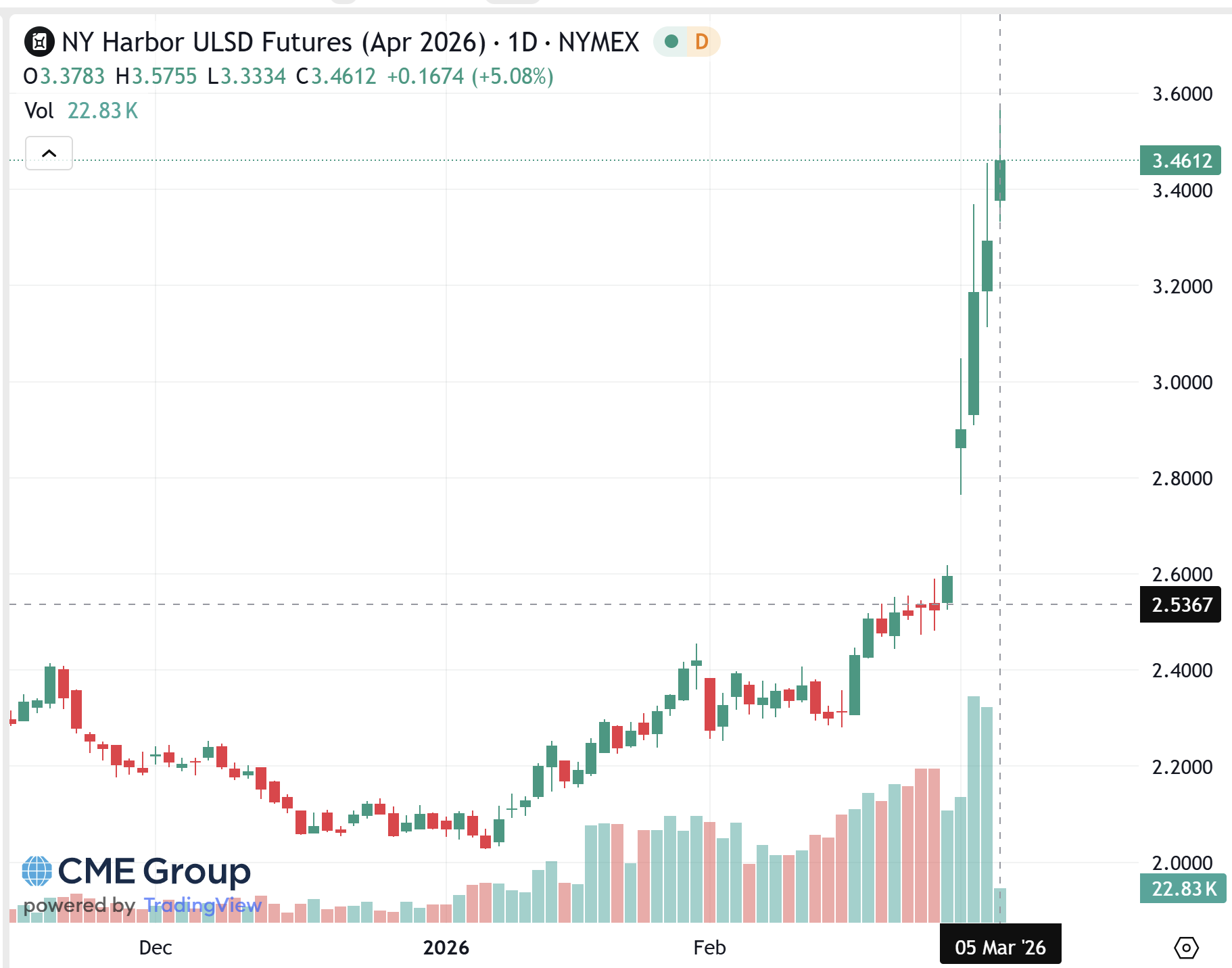 The US is primarily a gasoline based economy, with solid supply and refining capacity. We average only about 10% of or imports from the middle east. Europe, China and others are primarily diesel based economies and their structural dependance on Mid-east energy makes them more vulnerable to conflicts in the area. Since sanctions were imposed on Russian products to Europe, the US has been picking up the slack with exports of distillates. So the closing of the Straits of Hormuz exposes a weak point in those nations already hungry for distillates and energy, and an opportunity for others like institutional investors and market makers. Up like a rocket, down like a feather. You have heard it before, also why it is prudent to have some fixed price gallons on hand. We do not foresee any supply disruptions at this time as markets are well supplied. If this was December, that might be a different story. We’ve been working round the clock and will continue to do so until this passes. Please do not hesitate to reach out with any questions or concerns.